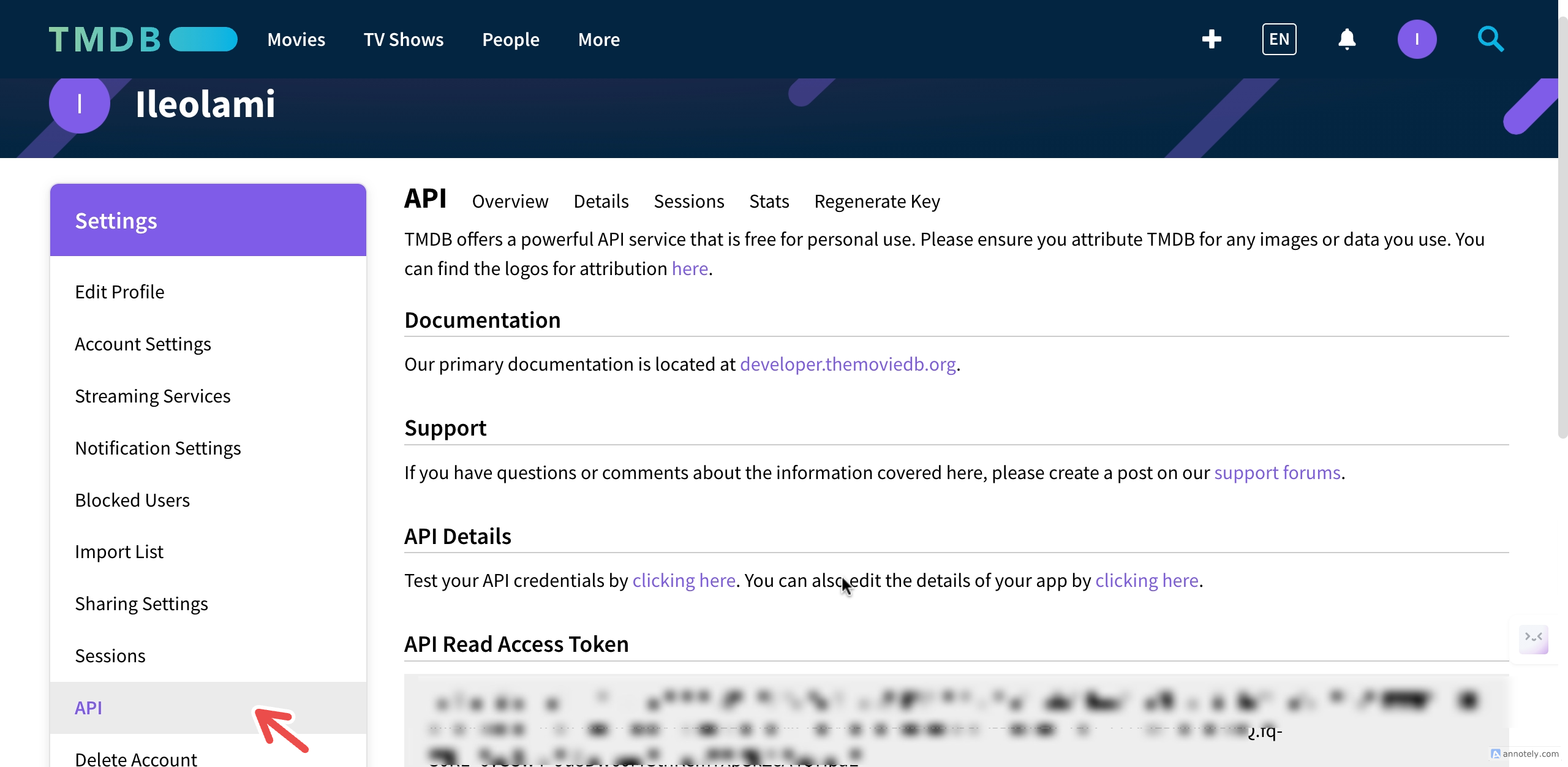 You can request an API key by logging into your TMDB account and clicking here.